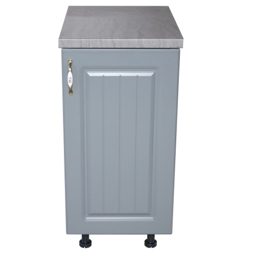 Corpul inferior cu 1 usa stanga Zebra este fabricat din PAL Melaminat alb cu grosimea de 16 mm, iar usa este fabricata din MDF Gri cu grosimea de 18 mm. Usa are frezare cu model "Dungi" pentru un aspect elegant. Corpul are picioare reglabile de 10 cm pentru o asezare optima in cazul podelelor denivelate, dar si pentru o curatare facila sub corp. Manerul este metalic cu ceramica pentru un aspect elegant, iar in interior se afla o polita mobila care formeaza 2 rafturi de depozitare. Corpul are blat atermic de culoare Beton. Dimensiunile corpului sunt 40 cm latime, 85 cm inaltime cu tot cu blat (82 cm fara blat) si 60 cm adancime cu tot cu blat (fara blat corpul are 50 cm adancime cu tot cu maner pentru a permite trecerea plintelor, tevilor, racordurilor etc. ce s-ar putea afla intre perete si corp). In cazul achizitionarii de la noi a mai multor corpuri cu blat, acesta se poate trimite intreg cat sa acopere toate corpurile comandate. Usa este reversibila , astfel incat manerul sau balamalele pot fi montate atat pe partea stanga cat si pe partea dreapta. *Nota: Schita de montaj nu se afla in interiorul coletului intre piesele de mobila. Schita de montaj o sa fie atasata pe spatele facturii.
