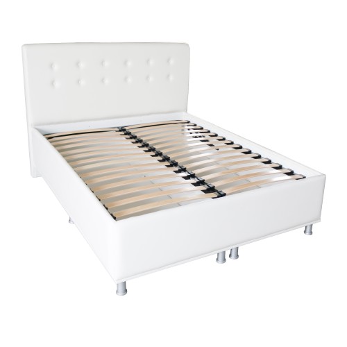 Patul pentru saltea de 140x200 cm este fabricat din PAL melaminat alb cu grosimea de 18 mm si este tapitat integral cu burete si piele ecologica alb. Patul are o lada foarte spatioasa ideala pentru depozitat lenjerii sau chiar obiecte mai voluminoase si grele avand fundul foarte solid. Accesul la lada este foarte facil datorita somierei metalice rabatabila pe pistoane, aceeasta oferind totodata si un suport foarte solid pentru orice tip de saltea. Patul este pe picioare de 10 cm inaltime asigurand astfel o buna circulatie a aerului pe sub pat, dar si posibilitatea de a se aspira cu usurinta sub pat. Tablia de la cap are un aspect deosebit datorita nasturilor tapitati si datorita stratului gros de burete de pe tablie se asigura un confort sporit atunci cand se sta in pozitie de citit sau privit la televizor. Dimensiunile exterioare ale patului sunt 150 cm latime, 112 cm inaltimea tabliei de la cap si 216 cm lungime. CARACTERISTICI GENERALE Tip produs: Pat Tip pat: Tapitat cu somiera metalica rabatabila si lada Dimensiune pat: Dublu Utilizat pentru: Dormitor Spatiu depozitare: Lada Numar spatii depozitare: 1 Stil: Modern Finisaj: Tapitat Culoare: Alb DETALII MATERIAL Material: PAL melaminat + metal + lemn + burete + piele ecologica Material tapiterie: Piele ecologica DIMENSIUNI Dimensiune L x H x a (cm): 150 x 112 x 216 Compatibilitate saltea (cm): 140 x 200 Greutate: 134 Kg